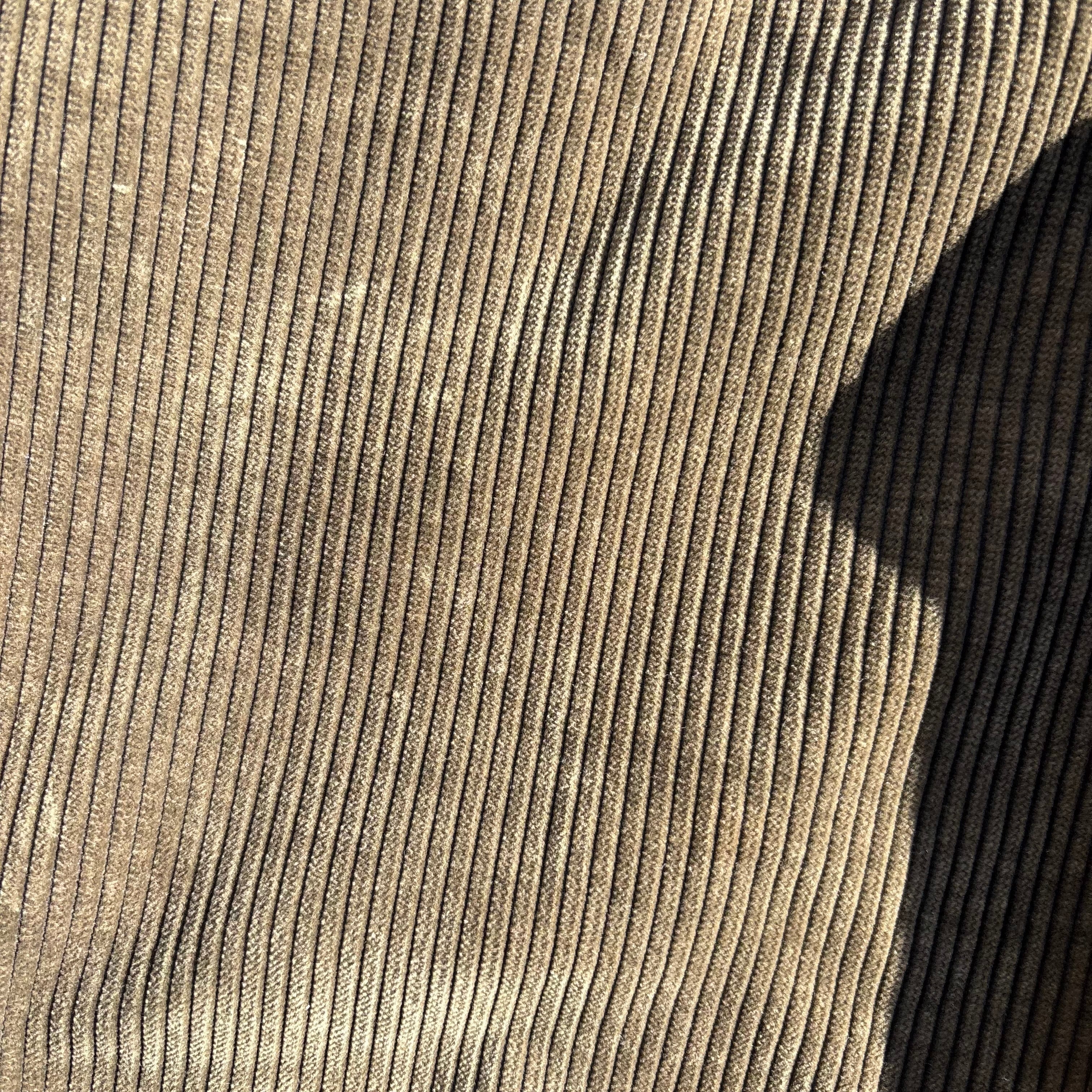 ブラウンとグリーンの間のような色味のコーデュロイパンツ。